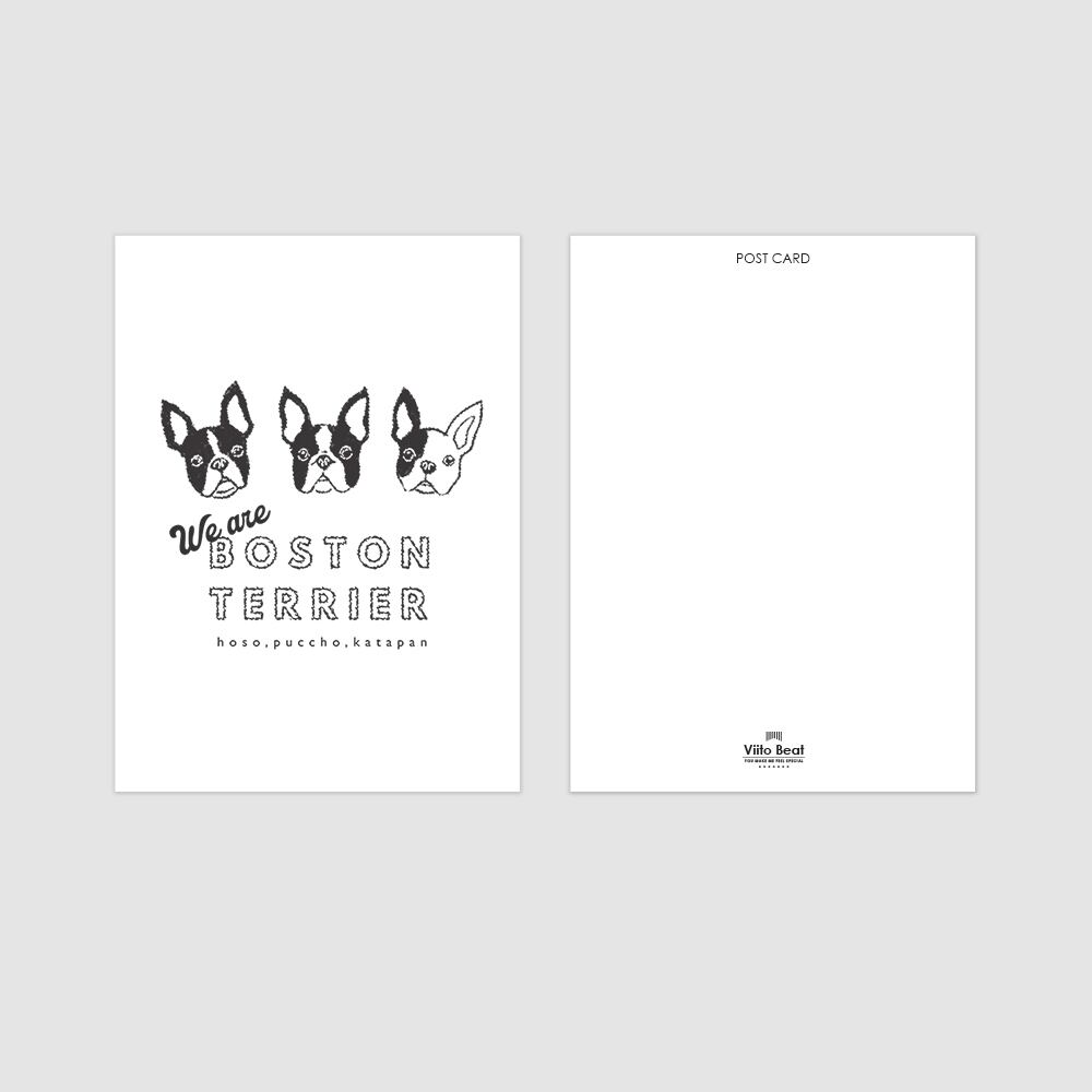 モノクロで統一されたシンプルなボストンテリアが描かれた手書き風イラスト。