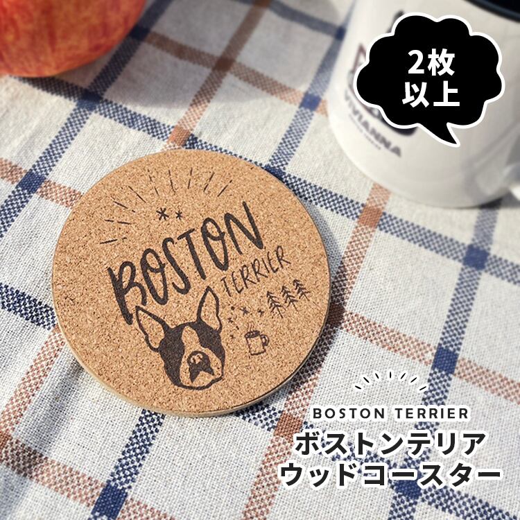 【2枚以上~】ボストンテリアのコルクウッドコースター